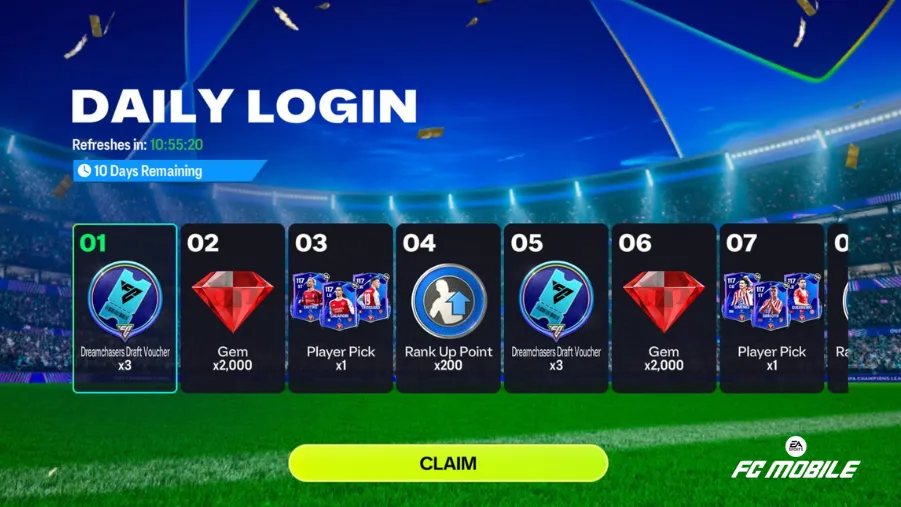 FC Mobile UEFA Dreamchasers Daily Login Rewards
